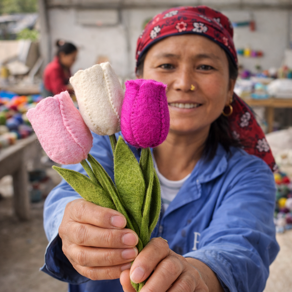 Met liefde handgemaakt door vrouwen in Nepal. Elk ontwerp vertelt een verhaal van vakmanschap, eerlijk werk en een betere toekomst.
