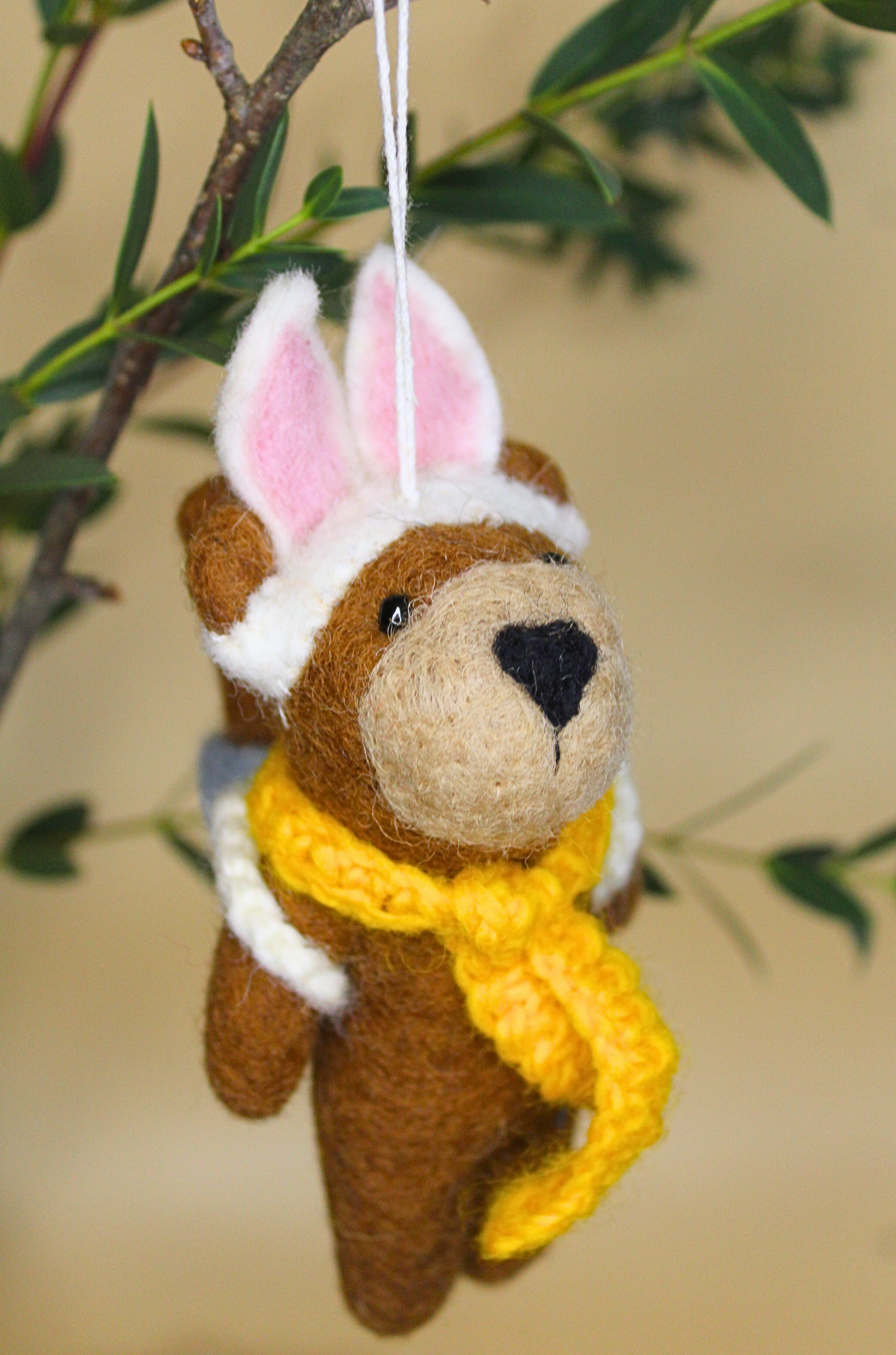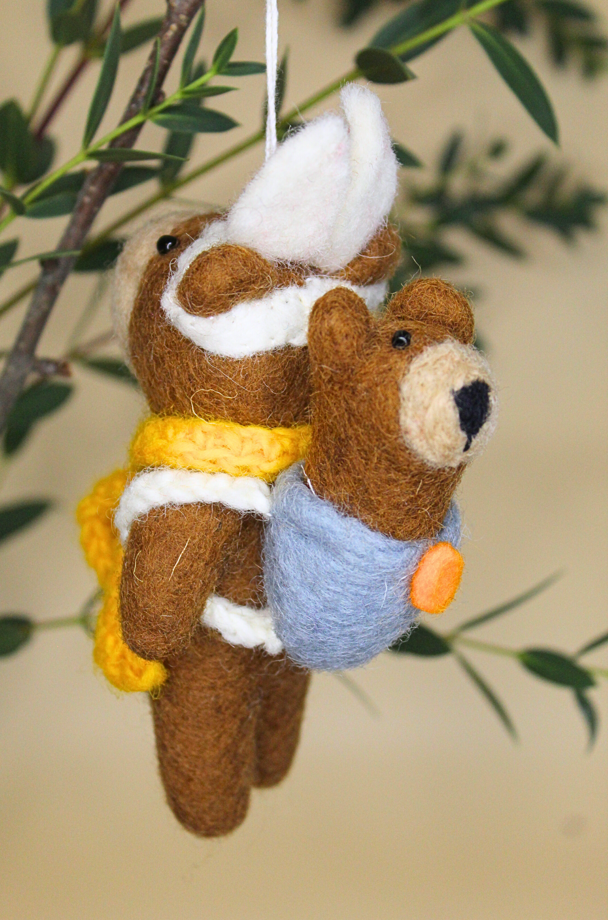 Berenhanger met baby beertje. Handgemaakt van 100% schapenwol.