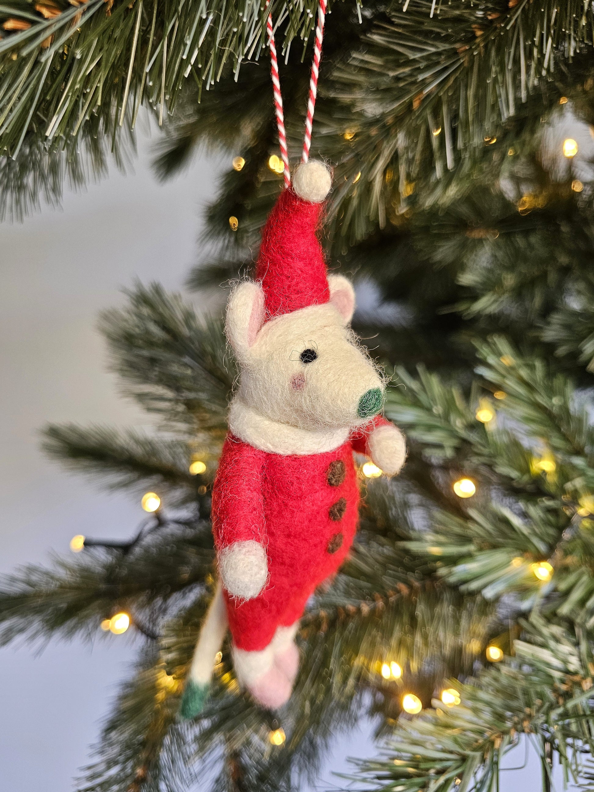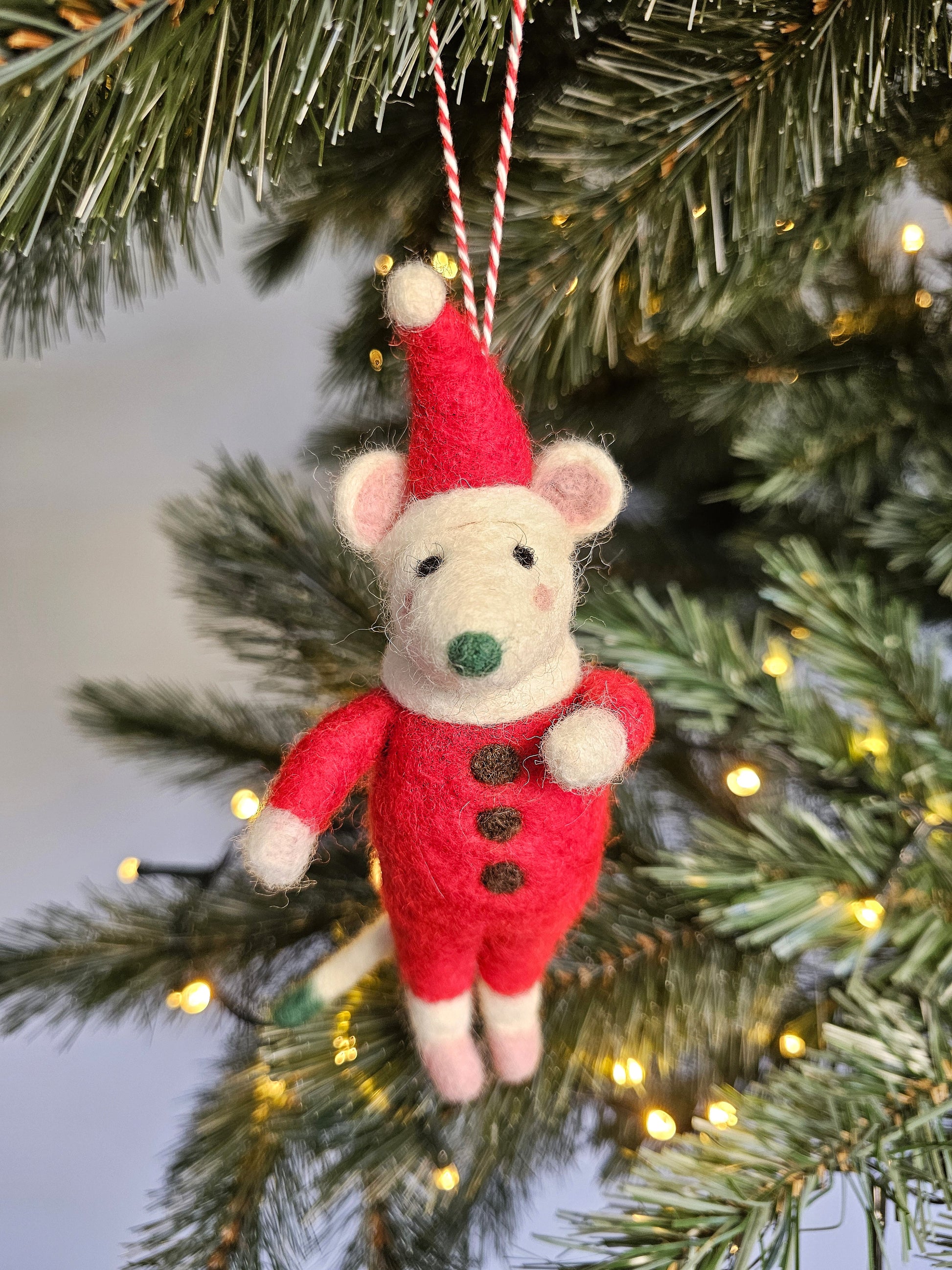 🔔 Let op: dit is een pre-order. Verzending vindt plaats in de week van 3 november 2025. Vilten hanger van een muis in elfjespak. Deze schattige muis is helemaal in de kerstsfeer met z’n rode pakje, zwarte knoopjes en puntmuts op z’n koppie! Of hij nu stiekem cadeautjes inpakt of kerstkoekjes bewaakt, hij is de perfecte toevoeging aan jouw feestelijke boom.