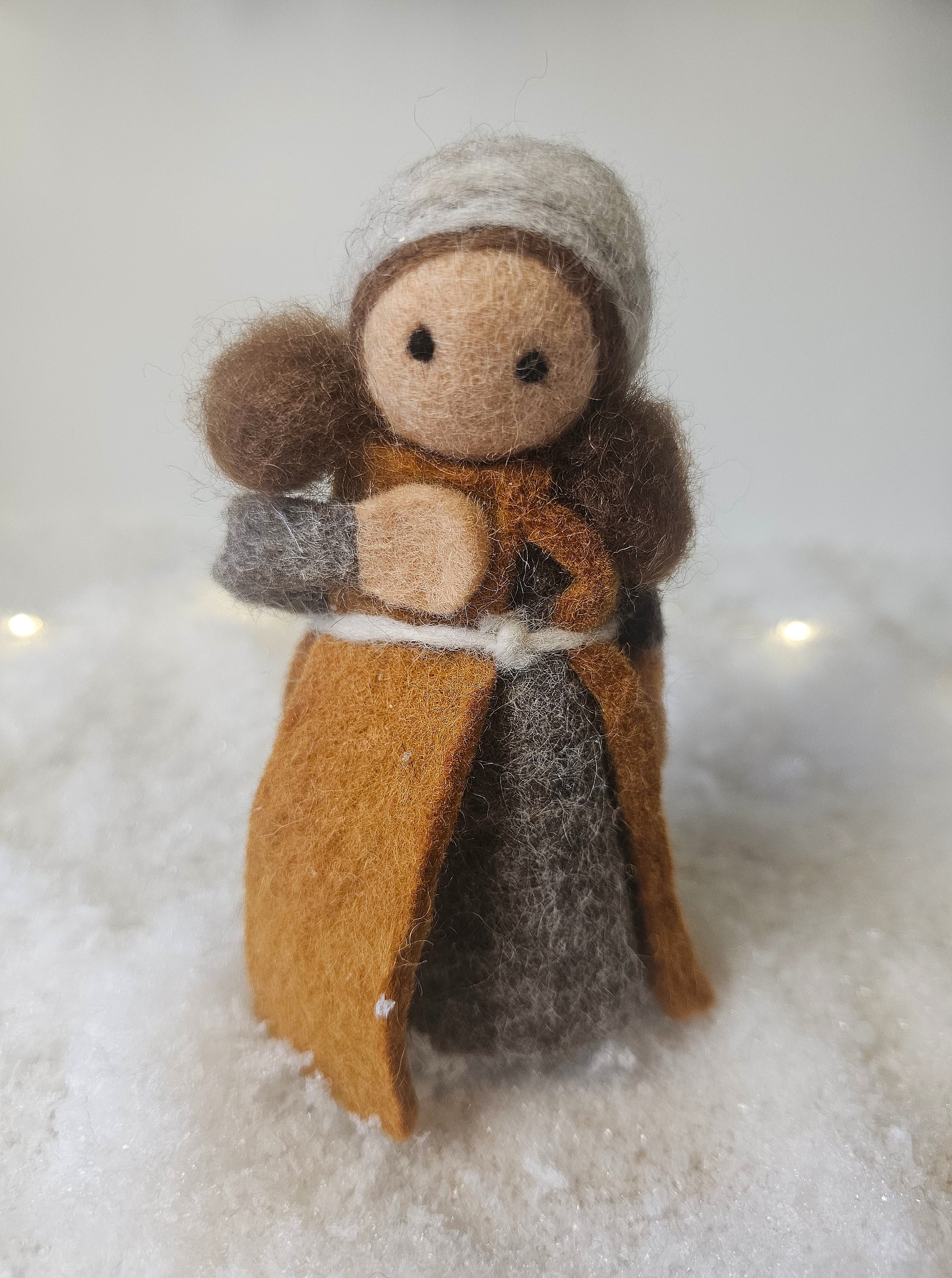 🔔 Let op: dit is een pre-order. Verzending vindt plaats in de week van 3 november 2025. Sfeervolle vilten kerst set van 5 handgemaakte figuren. Hij bestaat uit Jozef, Maria, het kindje Jezus, een schaap en een os. In warme, natuurlijke tinten laat de set het kerstverhaal prachtig tot leven komen! Handgemaakt en Fair trade, een bijzondere toevoeging aan je kerstdecoratie. Let op: Kerstboom op de foto is apart verkrijgbaar