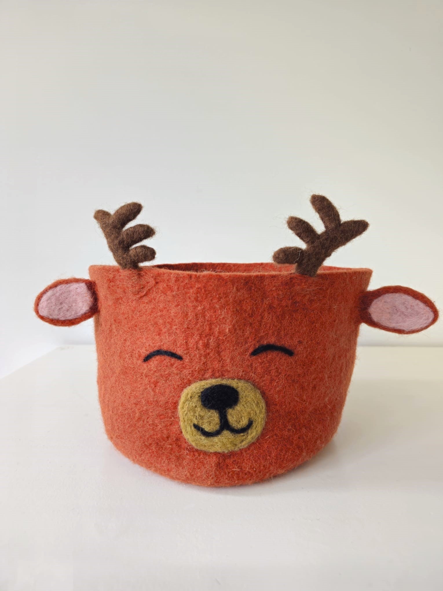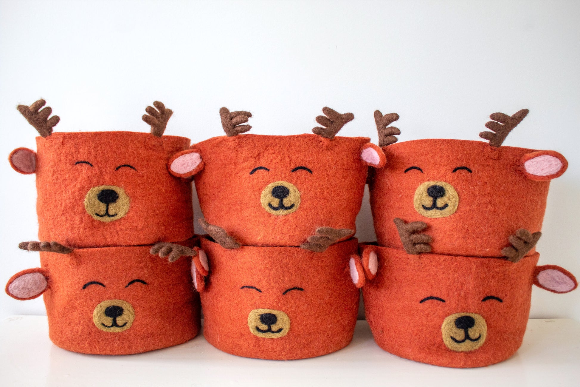 Dit handgemaakte vilten herten mandje is ideaal voor het opbergen van speelgoed én leuk tijdens de feestdagen als winterse decoratie. Vul het met dennenappels, kerstballen of lichtjes voor een magische touch!