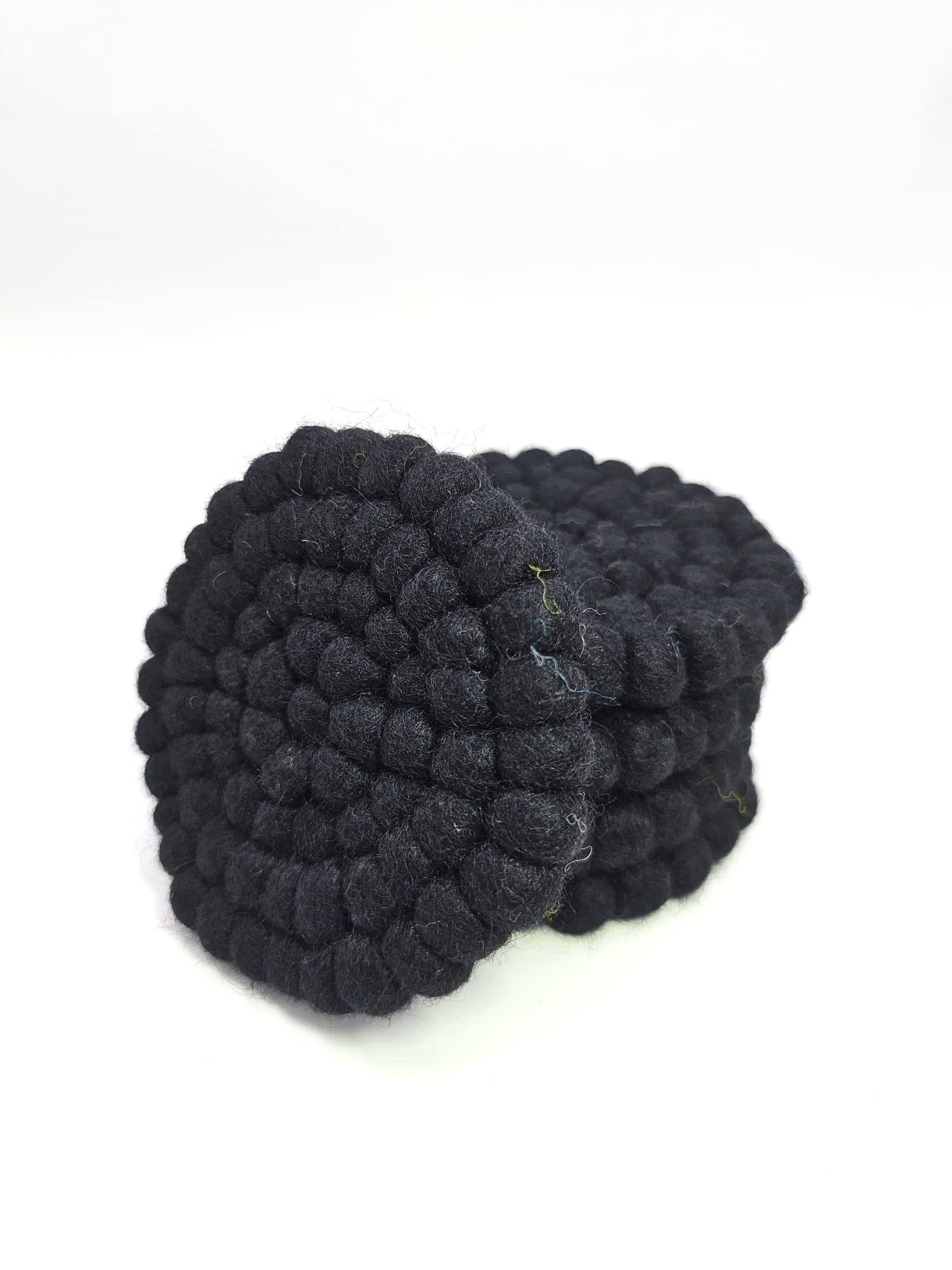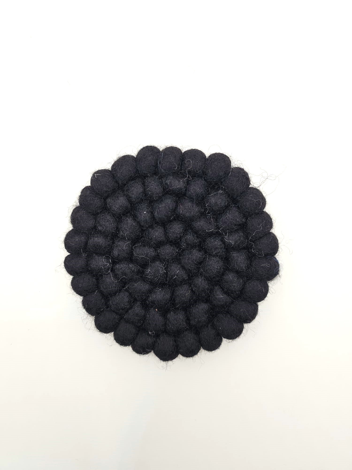 Onderzetter handgemaakt van vilten balletjes. Deze chique zwarte variant beschermt je tafel tegen kringen en beschadigingen van glazen. Tip: leuk om te mixen & matchen met andere kleuren!