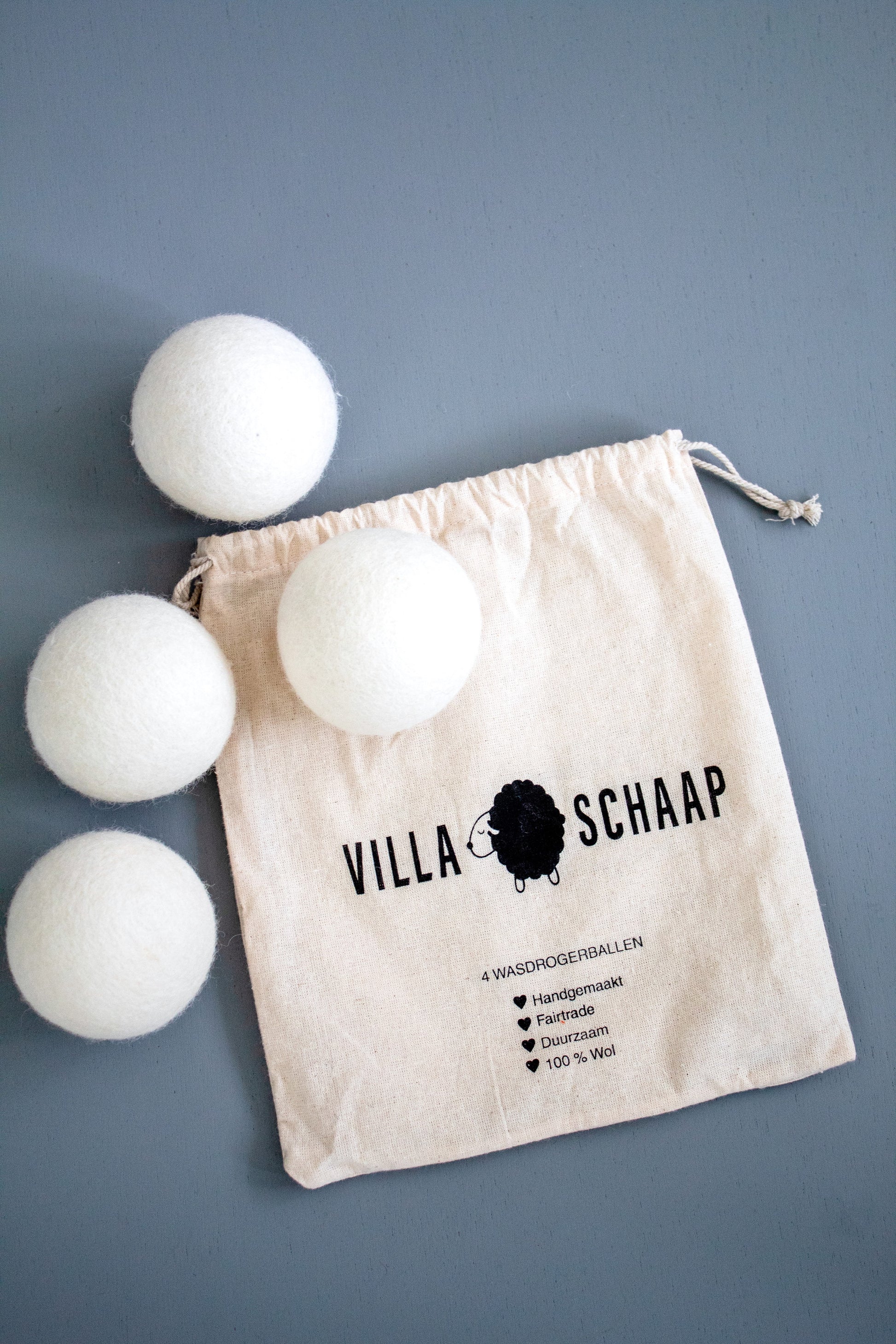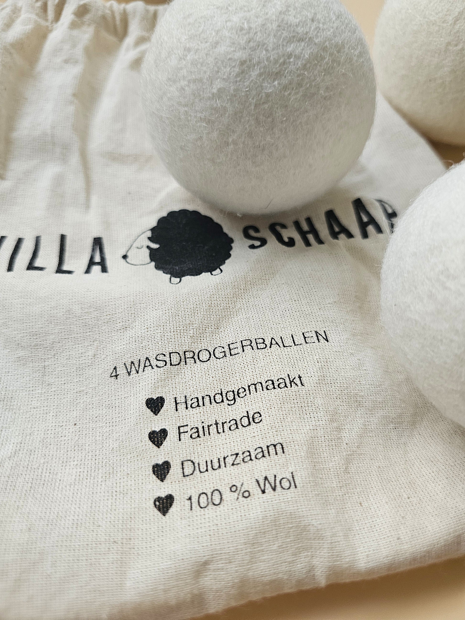 Set van 4 wasdrogerballen, gemaakt van 100% schapenwol. Gebruik ze eenvoudig door ze toe te voegen aan de schone was in je droger. Dankzij de drogerballen circuleert er meer lucht tussen de kleding, waardoor deze sneller droogt en heerlijk zacht aanvoelt.